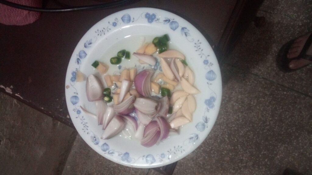 Step 1: Cutting of Veggies and Boiling of Potatoes & Chicken Pieces: